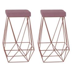 Kit 2 Banqueta Decorativa Kathy Base Bronze Veludo Rosê - Gran Belo