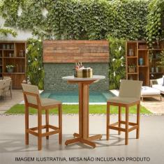Kit 2 Banquetas Alta Pérola com Encosto Estofada em Veludo Bege Madeira Maciça Castanho