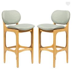 Kit 2 Banquetas para Cozinha Americana Decor Madeira Mel Linho Verde L84 RMI