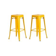 Kit 2 Banquetas Tolix Iron Design Industrial Amarela 76 cm Aço Cozinha Bar Bistrô Bancada