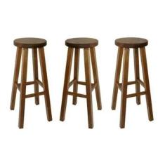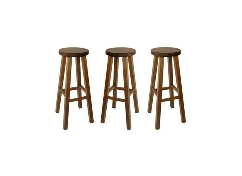 Kit 3 Banqueta Padrão Nogueira Alta Hardman Assento Redondo - Hardman