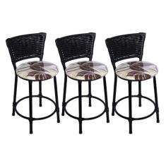 Kit 3 Banquetas Alta Romana Junco com Assento Floral Marrom Fortmix