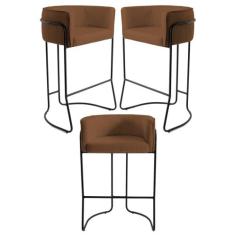 Kit 3 Banquetas Decorativas Base Aço Betina B-262 Veludo Telha - Domi
