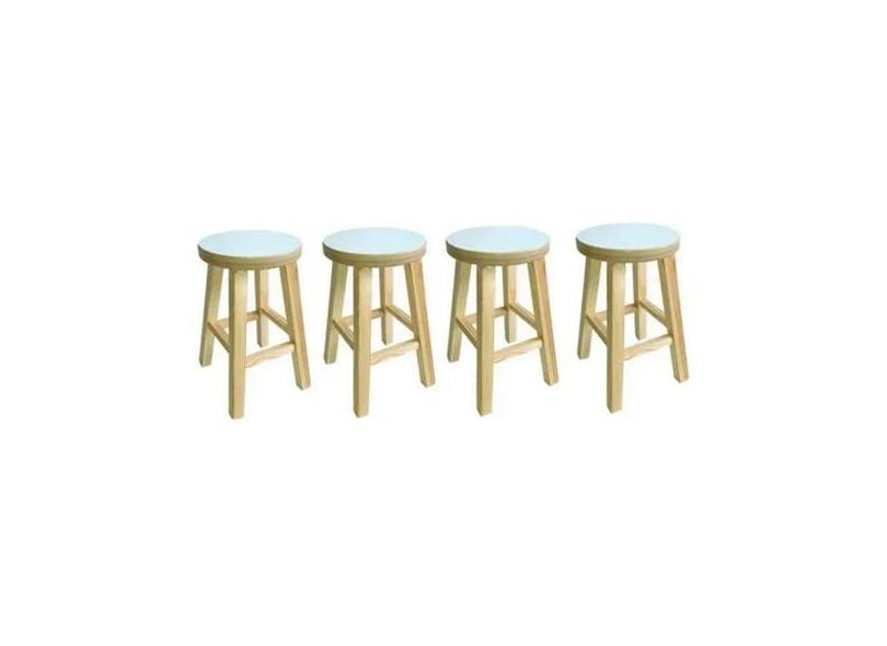 kit 4 Banqueta Media Hardman Madeira Natural Assento Redondo MDF Branc
