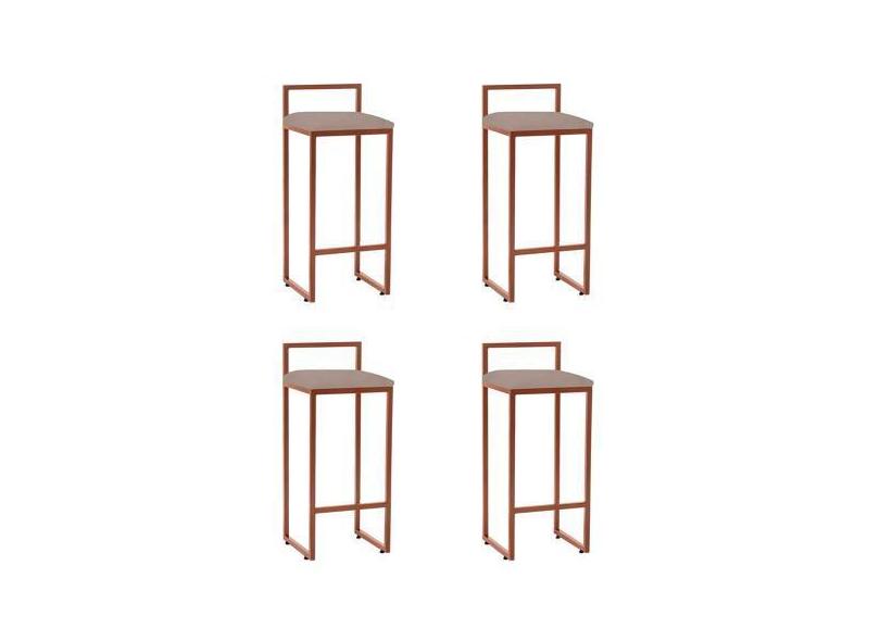Kit 4 Banquetas Industrial Premium Alta Bar Cozinha Bistrô em Aço Dori