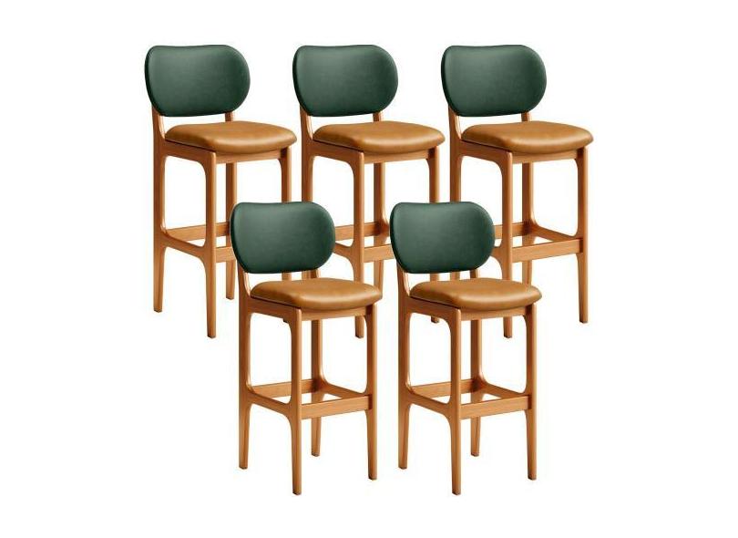 Kit 5 Banquetas Alta Bar Cozinha Jantar Betta L02 Imbuia Material Sint