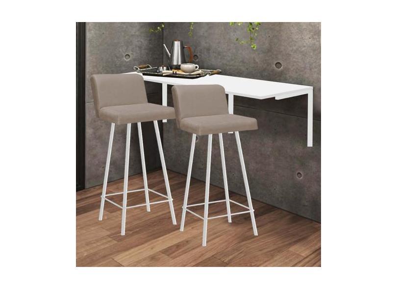 Kit Mesa Suspensa de Parede Fixa MDF Branco + 2 Banquetas Lexi Ferro B