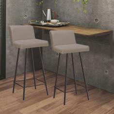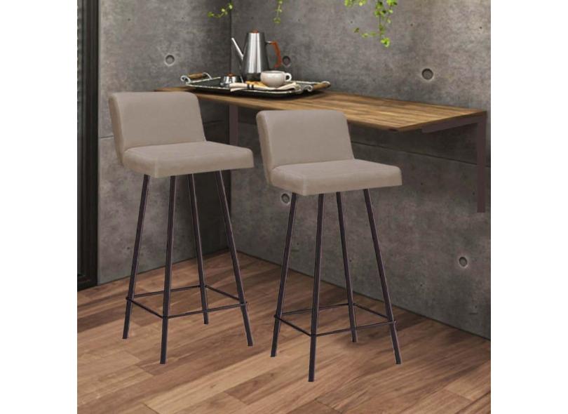 Kit Mesa Suspensa de Parede Fixa MDF Carvalho + 2 Banquetas Lexi Ferro Marrom Sintético Bege - Ahazzo Móveis