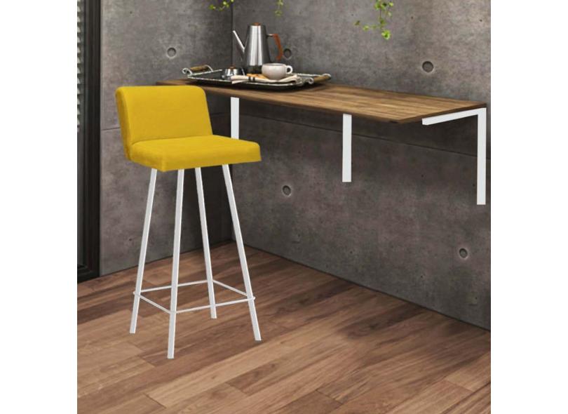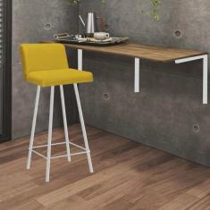 Kit Mesa Suspensa de Parede Fixa MDF Freijó + 1 Banqueta Lexi Ferro Branco Sintético Amarelo - Ahazzo Móveis