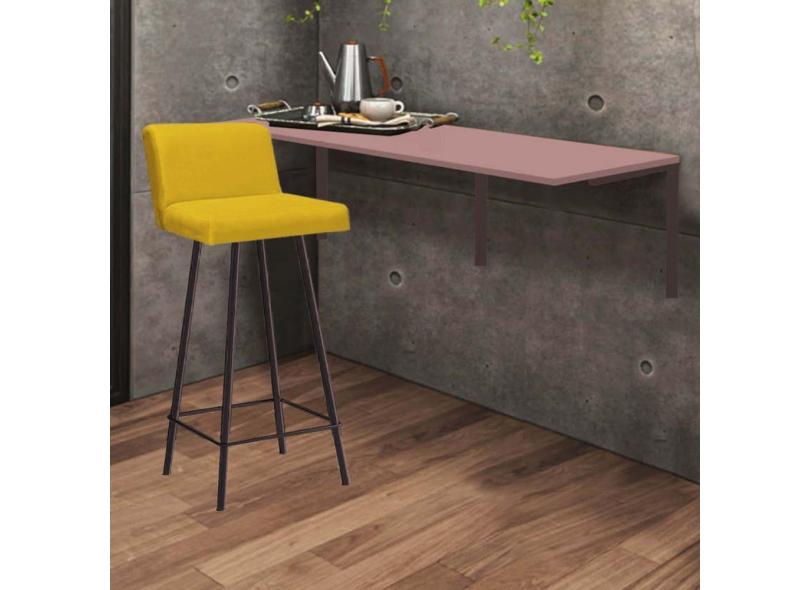 Kit Mesa Suspensa de Parede Fixa MDF Rosa + 1 Banqueta Lexi Ferro Marrom Corino Amarelo - Ahazzo Móveis