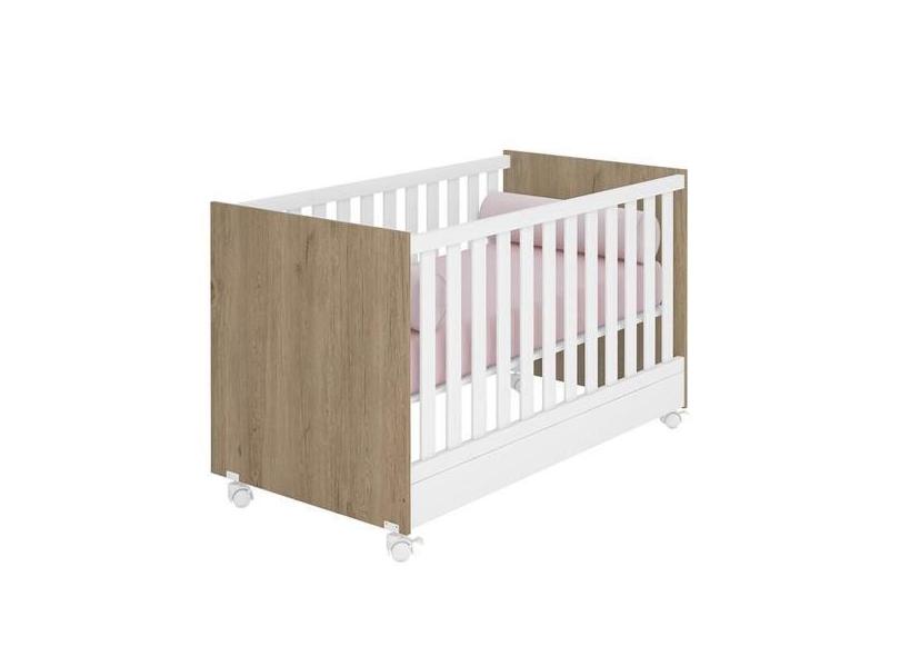 Berço Mini Cama Americano Doce Sonho com rodízios Carvalho/Branco - Qm