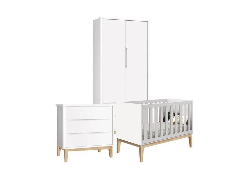Quarto de Bebê Classic 2 Portas Branco com Pés Madeira Natural Reller