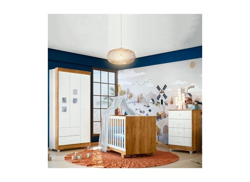 Quarto de Bebê Completo Life 100% Mdf 3 Portas 6 Gavetas Branco/Ypê 22