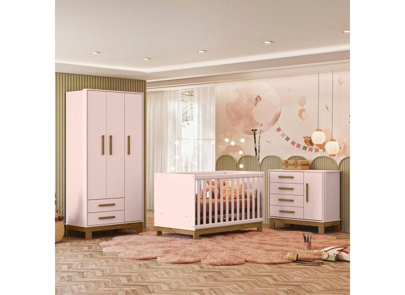 Quarto de Bebê Qencanto Slim Completo Qmovi Rosa Acetinado