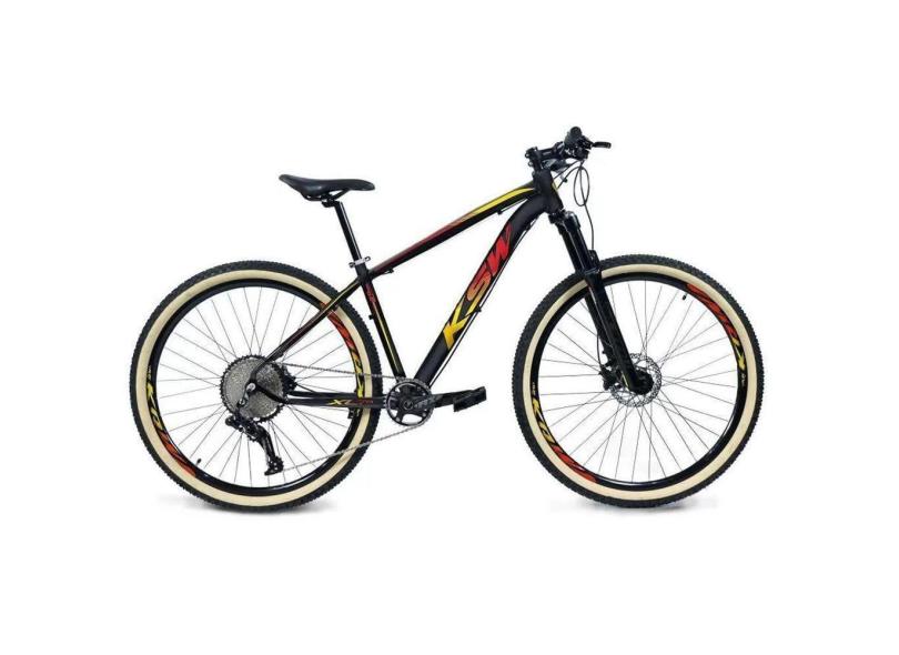 Bicicleta 29 Ksw Xlt 12v Freios Hidráulicos 1x12v Trava No Ombro Pneu Bege - Preto\Vermelho\Amarelo