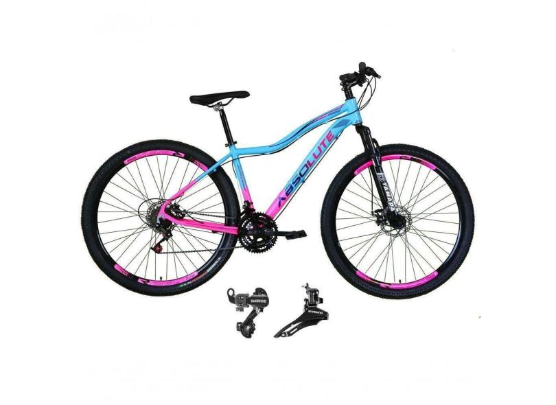 Bicicleta Aro 29 Absolute Hera Feminina Alumínio 21 Marchas Câmbios Shimano Freio A Disco Azul-rosa 15