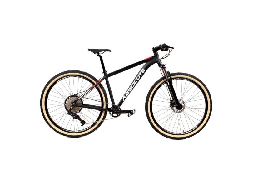Bicicleta Aro 29 Absolute Nero 4 12v Suspensão c/ Trava K7 11/50 Freio Hidráulico Kit 1x12 Pneu Bege-Unissex