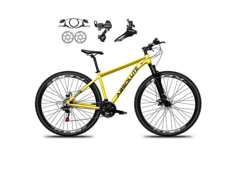 Bicicleta Aro 29 Absolute Nero 5 21v Alumínio Câmbios Shimano Freio Disco Hidráulico Garfo Suspensão - Amarelo Tam.17