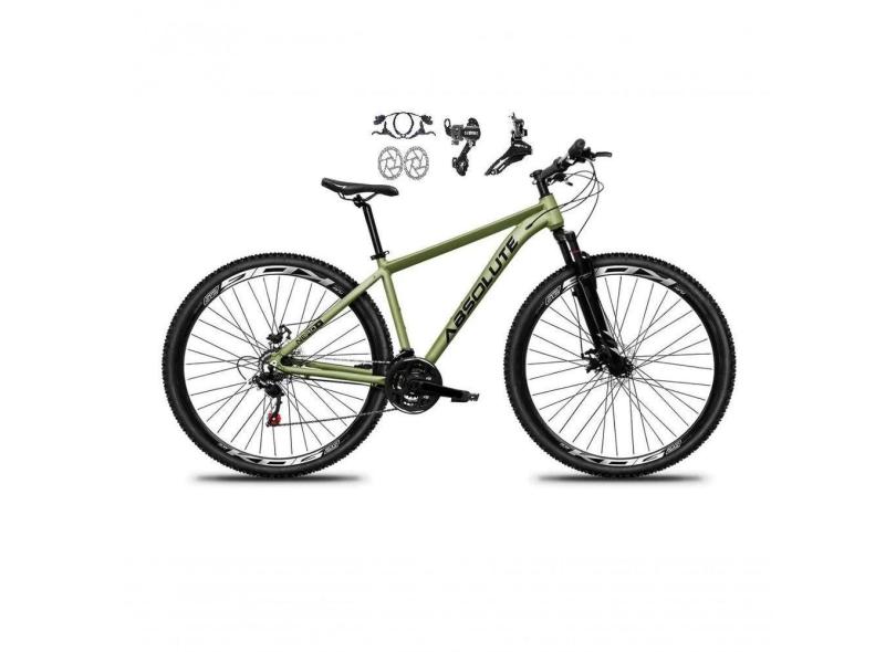 Bicicleta Aro 29 Absolute Nero 5 21v Alumínio Câmbios Shimano Freio Disco Hidráulico Garfo Suspensão - Oliva Tam.21