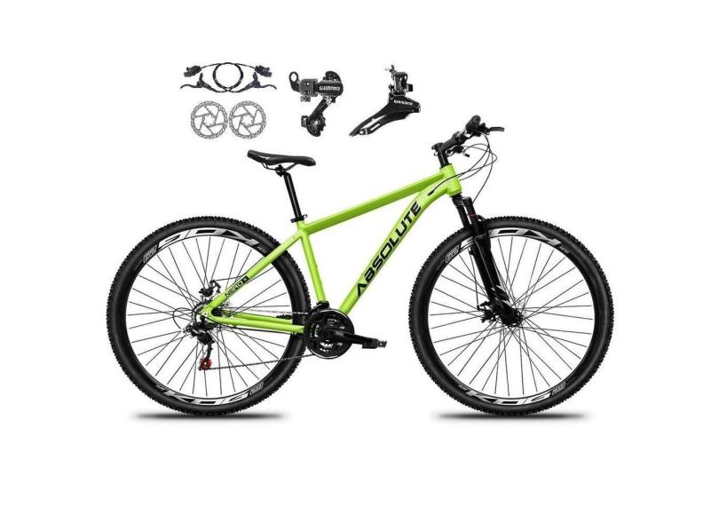 Bicicleta Aro 29 Absolute Nero 5 21v Alumínio Câmbios Shimano Freio Disco Hidráulico Garfo Suspensão - Verde Tam.15