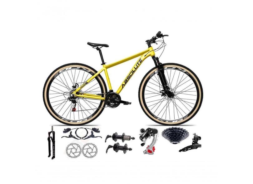 Bicicleta Aro 29 Absolute Nero 5 Câmbios Shimano 24v K7 Freios Hidráulicos Garfo Trava Com Pneu Faixa - Amarelo 15