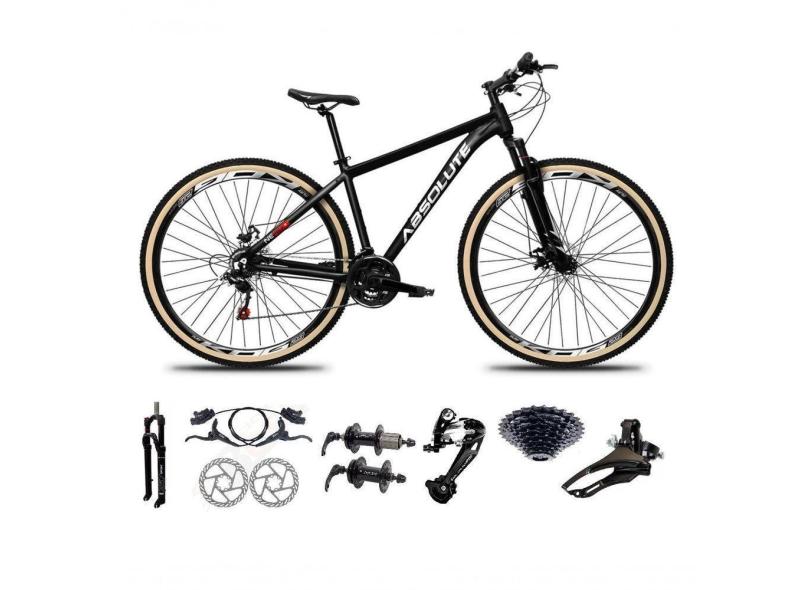 Bicicleta Aro 29 Absolute Nero 5 Freio Hidráulico K7 27v Garfo Com Trava Pneu Com Faixa - Preto Tam.19