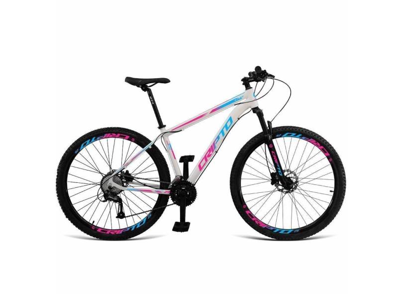 Bicicleta Aro 29 Cripto 18v Absolute Hidráulica K7 E Trava - 19" Branco-Azul E Rosa