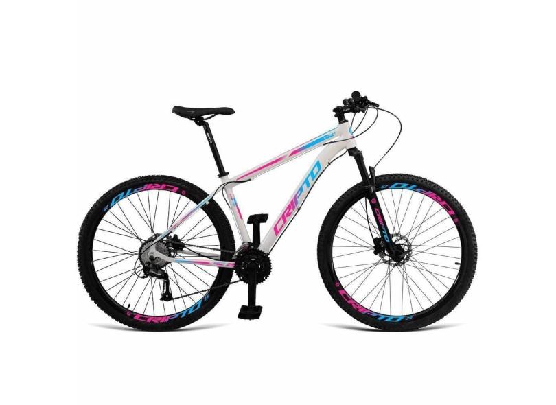 Bicicleta Aro 29 Cripto 18v Absolute Hidráulica K7 E Trava - 21" Branco-Azul E Rosa