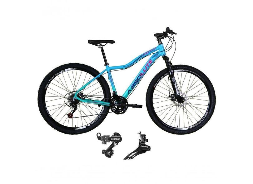 Bicicleta Aro 29 Feminina Absolute Hera Alumínio 21v Câmbios Shimano Suspensão Azul-verde 17