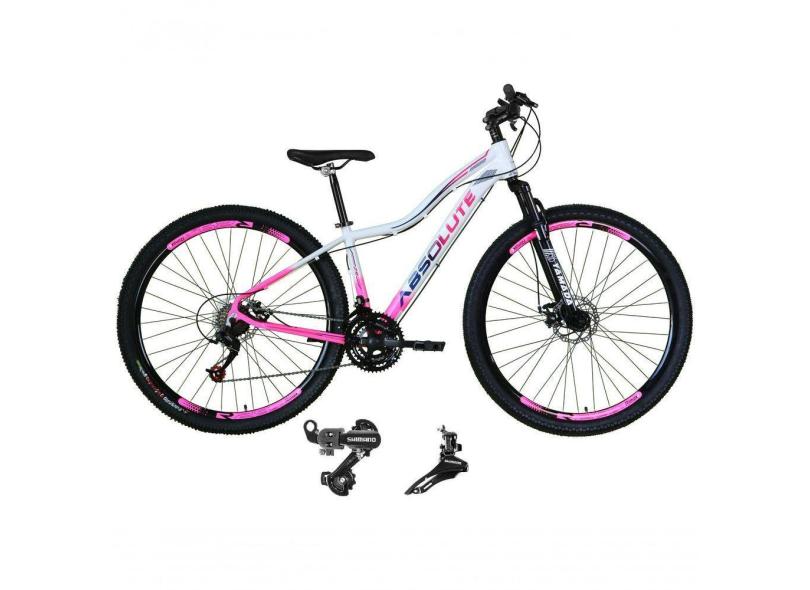Bicicleta Aro 29 Feminina Absolute Hera Alumínio 21v Câmbios Shimano Suspensão Branco-rosa 17