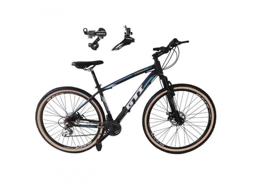 Bicicleta Aro 29 Gti Roma Alumínio 21v Câmbios Shimano Freio A Disco C- Pneu Faixa Bege Preto-azul 15
