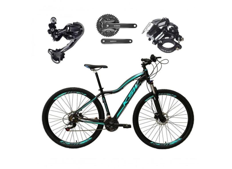 Bicicleta Aro 29 Ksw Mwza Feminina Câmbio Deore E Altus 27v F/hidráulicos Garfo Trava - Preto/azul Tam.17
