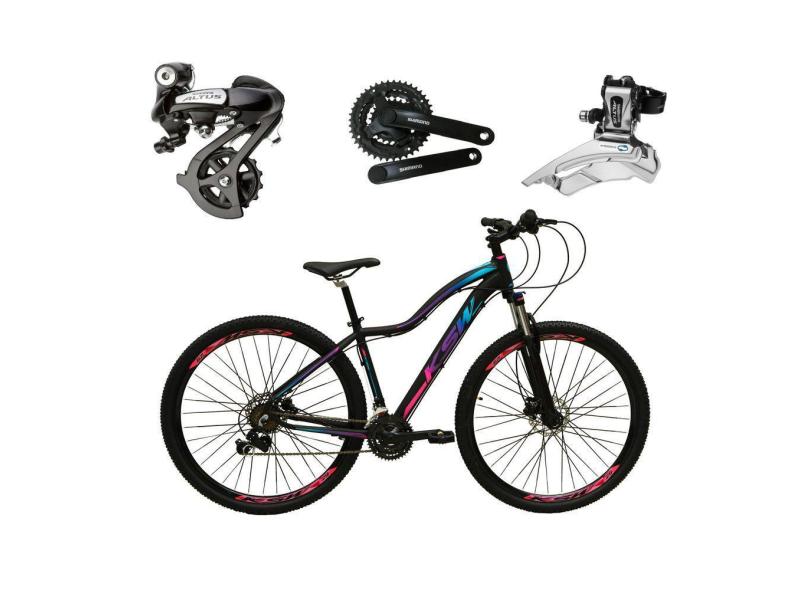 Bicicleta Aro 29 Ksw Mwza Feminina Câmbios Shimano Altus 24v K7 Alumínio Freios Hidráulicos Garfo Com Trava - Preto/Pink/Azul
