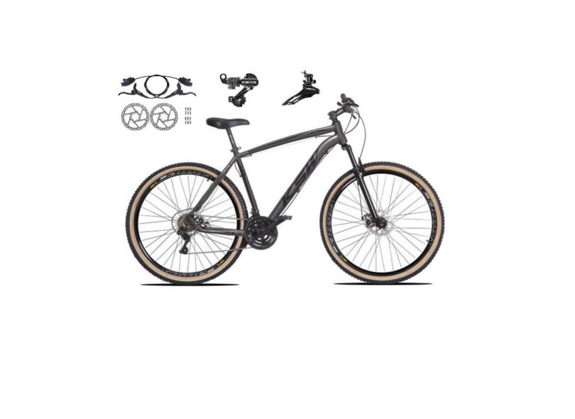 Bicicleta aro 29 Ksw Xlt 24v Câmbios Shimano Freios Hidráulicos Garfo com Suspensão Pneu Faixa Bege - Grafite