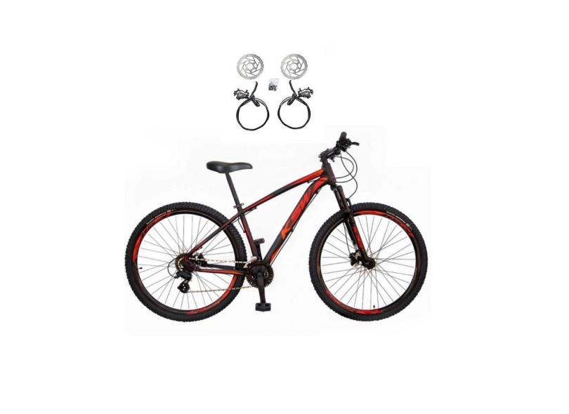 Bicicleta Aro 29 Ksw Xlt 24v Freios Hidráulicos Garfo Suspensão Mtb - Preto/Vermelho/Laranja