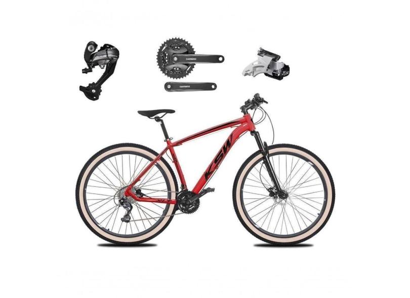 Bicicleta Aro 29 Ksw Xlt 27v Câmbios Shimano Altus Freios Hidráulicos Garfo Trava Pneu Faixa - Vermelho Tam.17