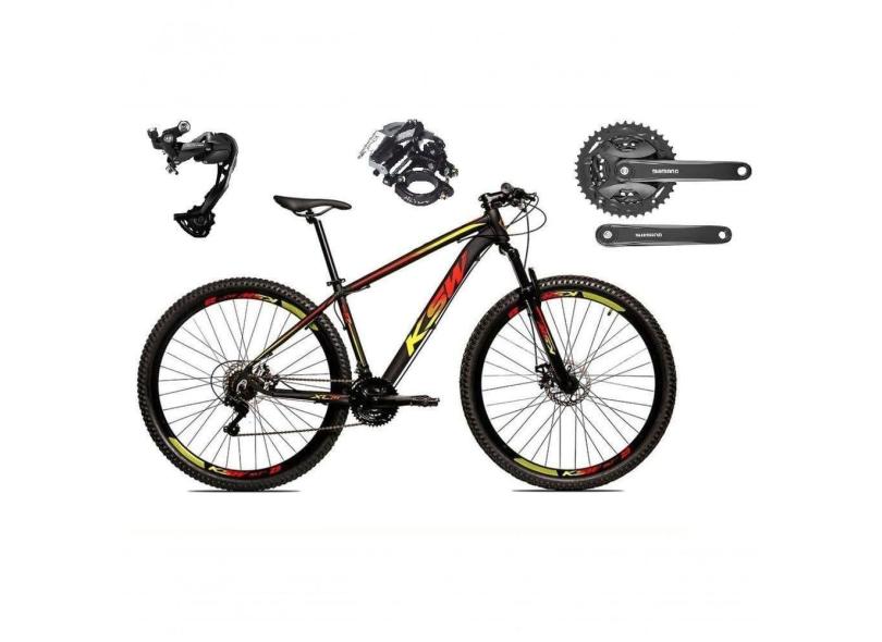 Bicicleta Aro 29 Ksw Xlt Alívio E Altus 27v Freio Hidráulico Garfo Trava - Preto-vermelho-amarelo Tam.21