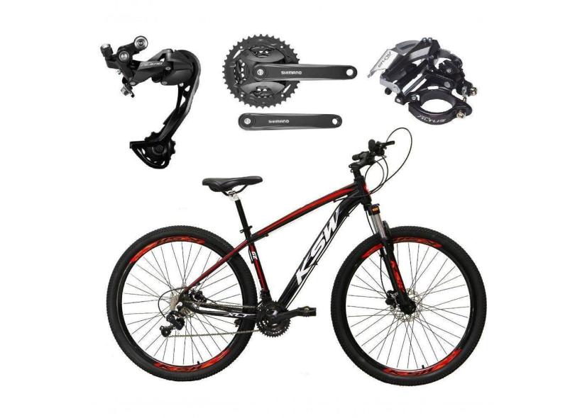 Bicicleta Aro 29 Ksw Xlt Alívio E Altus 27v Freio Hidráulico Garfo Trava - Preto-vermelho-branco Tam.21