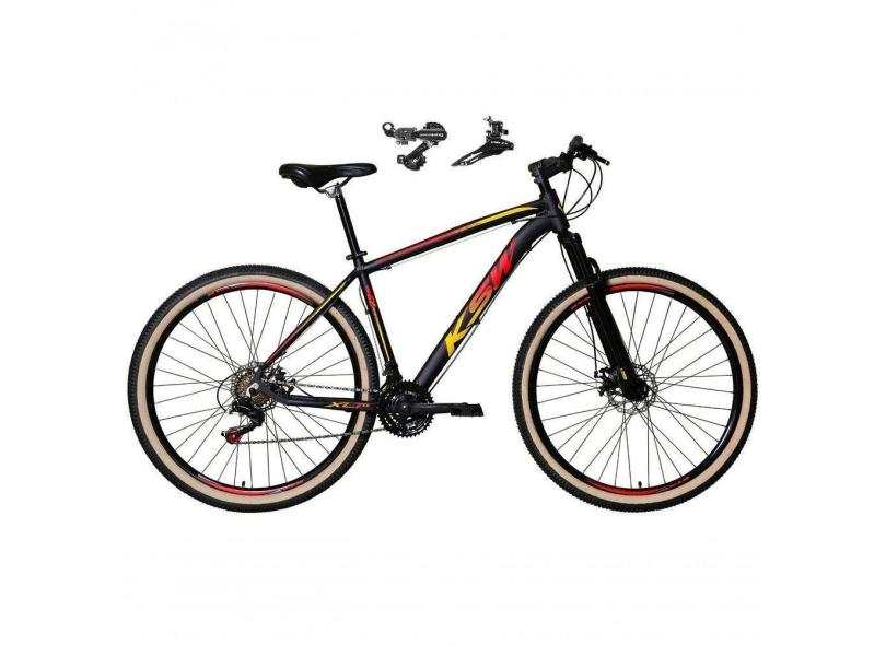 Bicicleta Aro 29 Ksw Xlt Alumínio 24v Câmbios Shimano Garfo Suspensão Pneu Faixa Bege Preto-vermelho-amarelo 21