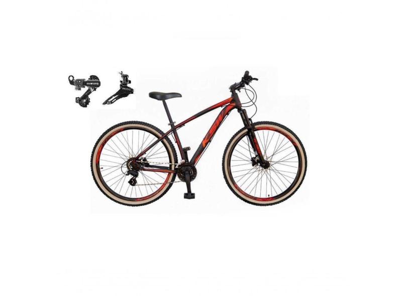 Bicicleta Aro 29 Ksw Xlt Alumínio 24v Câmbios Shimano Garfo Suspensão Pneu Faixa Bege Preto-vermelho-laranja 19