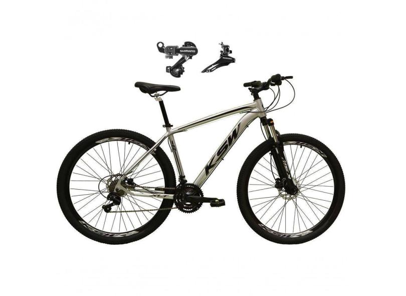 Bicicleta Aro 29 Ksw Xlt Alumínio 24v Câmbios Shimano Garfo Suspensão - Prata Tam.21