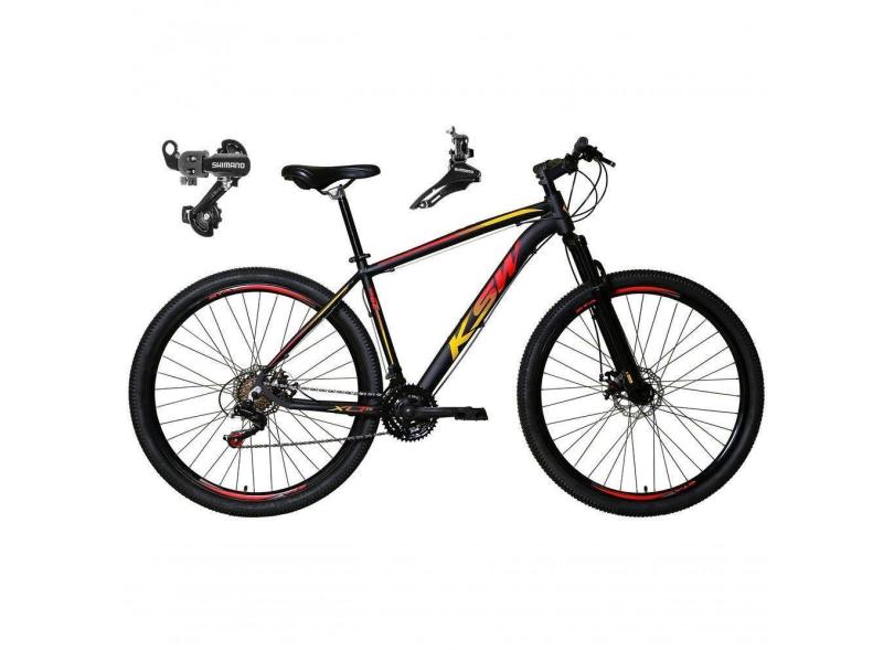 Bicicleta Aro 29 Ksw Xlt Alumínio 24v Câmbios Shimano Garfo Suspensão - Preto/vermelho/amarelo Tam.15