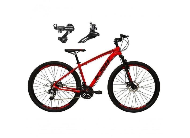 Bicicleta Aro 29 Ksw Xlt Alumínio 24v Câmbios Shimano Garfo Suspensão - Vermelho Tam.19