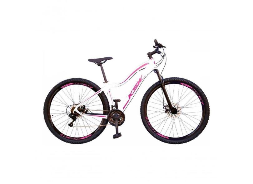 Bicicleta Feminina Aro 29 Ksw Mwza Alumínio 27v Freio A Disco Mecânico - Branco-pink-violeta Tam.15