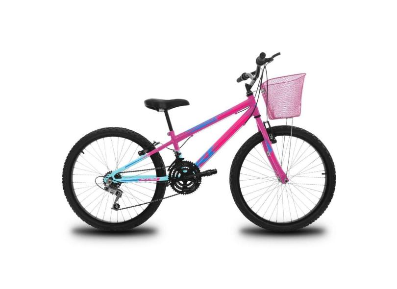 Bicicleta Infantil Aro 24 KOG Feminina 18 Marcha 3x8 Velocidades com Cestinha para Meninas Azul Degrade Rosa
