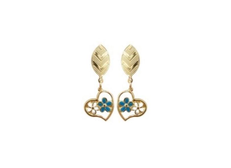 Brinco Argolinha Infantil Coração Flor Folheado Ouro - Mixfolheados