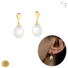 Brinco de Ouro 10K 416 com Pérola Natural Biwa Infantil e Adulto com N