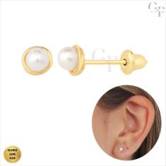 Brinco de Ouro 10k Com Pérola Natural Rococó De 3mm Adulto e Infantil