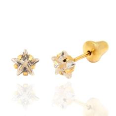 Brinco Em Ouro 18K Estrela Zircônia 3mm Segundo Furo Infantil Bebê Rn