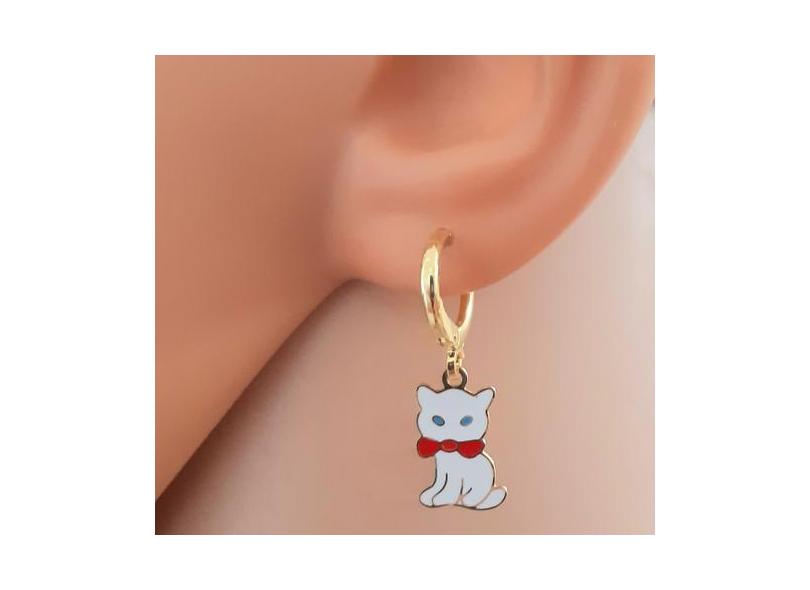 Brinco Infantil Argolinha Gatinho Folheado Ouro 18K Antialérgico - Mix